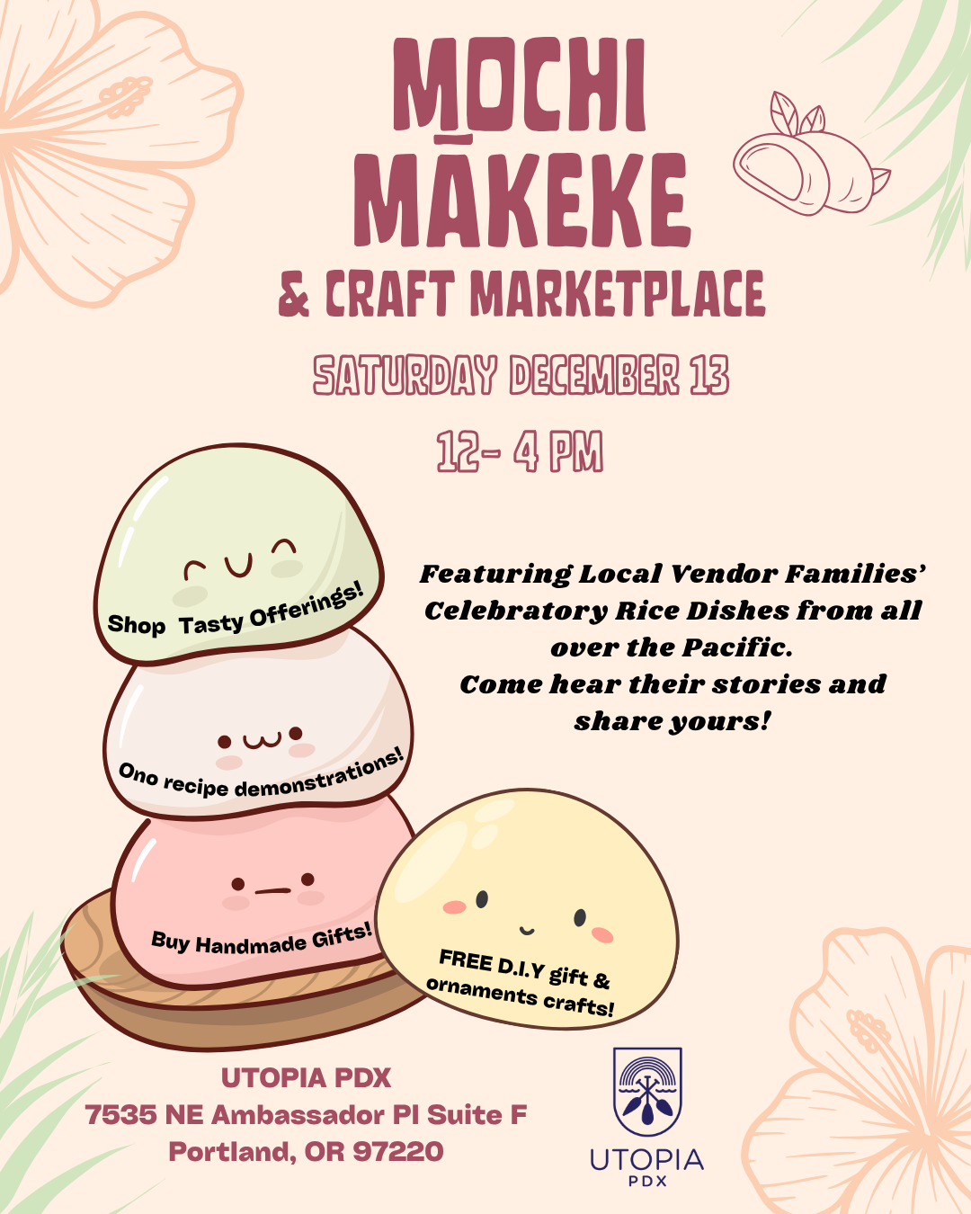 We’re excited to announce our Mochi Mākeke on Saturday, December 13th! Shop our rice based dishes and desserts from all over the Pasifika! Mark your calendars and follow us on instagram for more info on the local onolicious, and broke-da-mout food vendors. We can’t wait to collaborate together for some extra special promotional videos, showcasing Pasifika vendors in the Portland area!