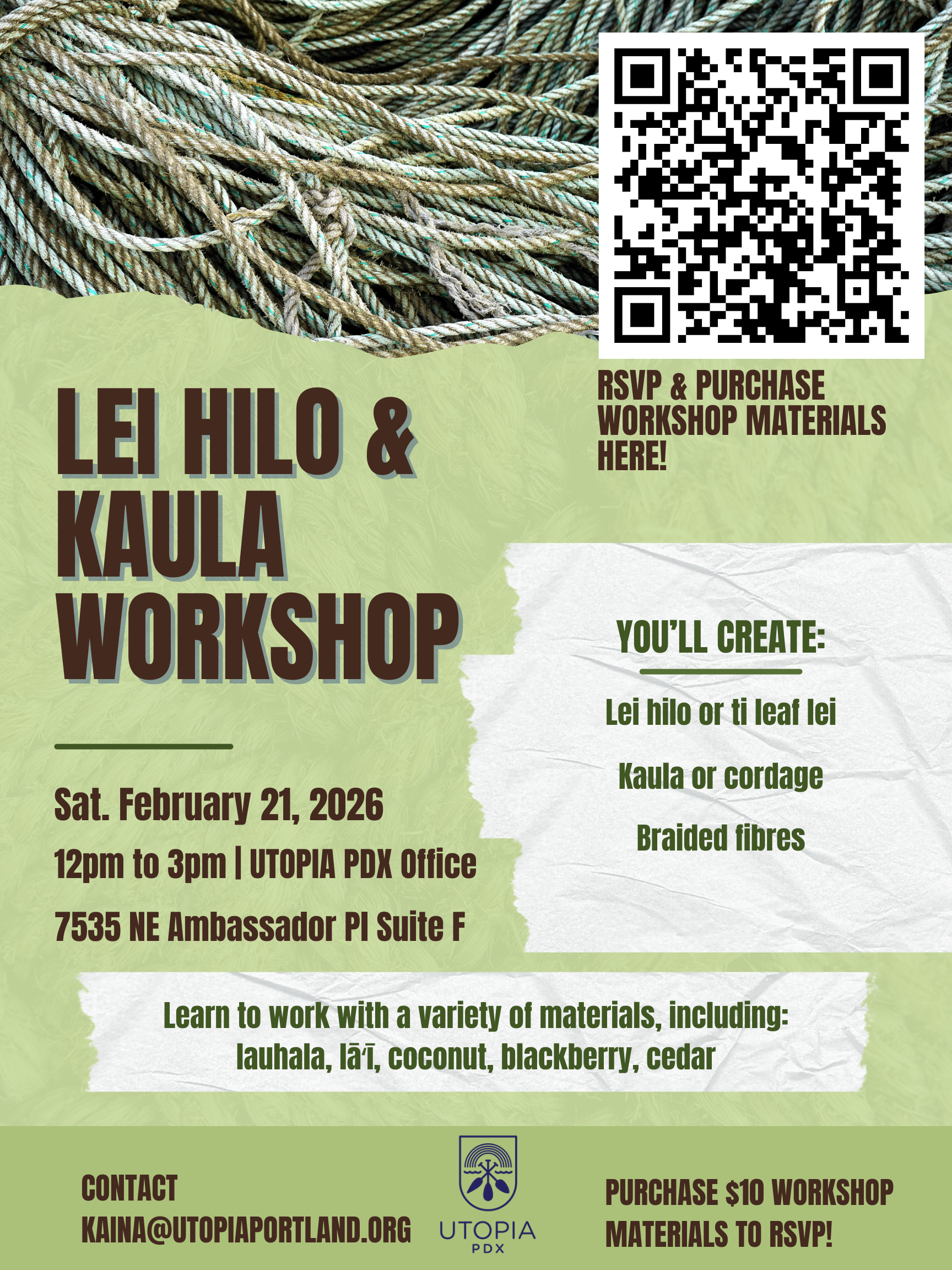 Missed out on our weaving workshops last year? Join us for our Lei Hilo & Kaula Workshop with Kaina & Kawika!!