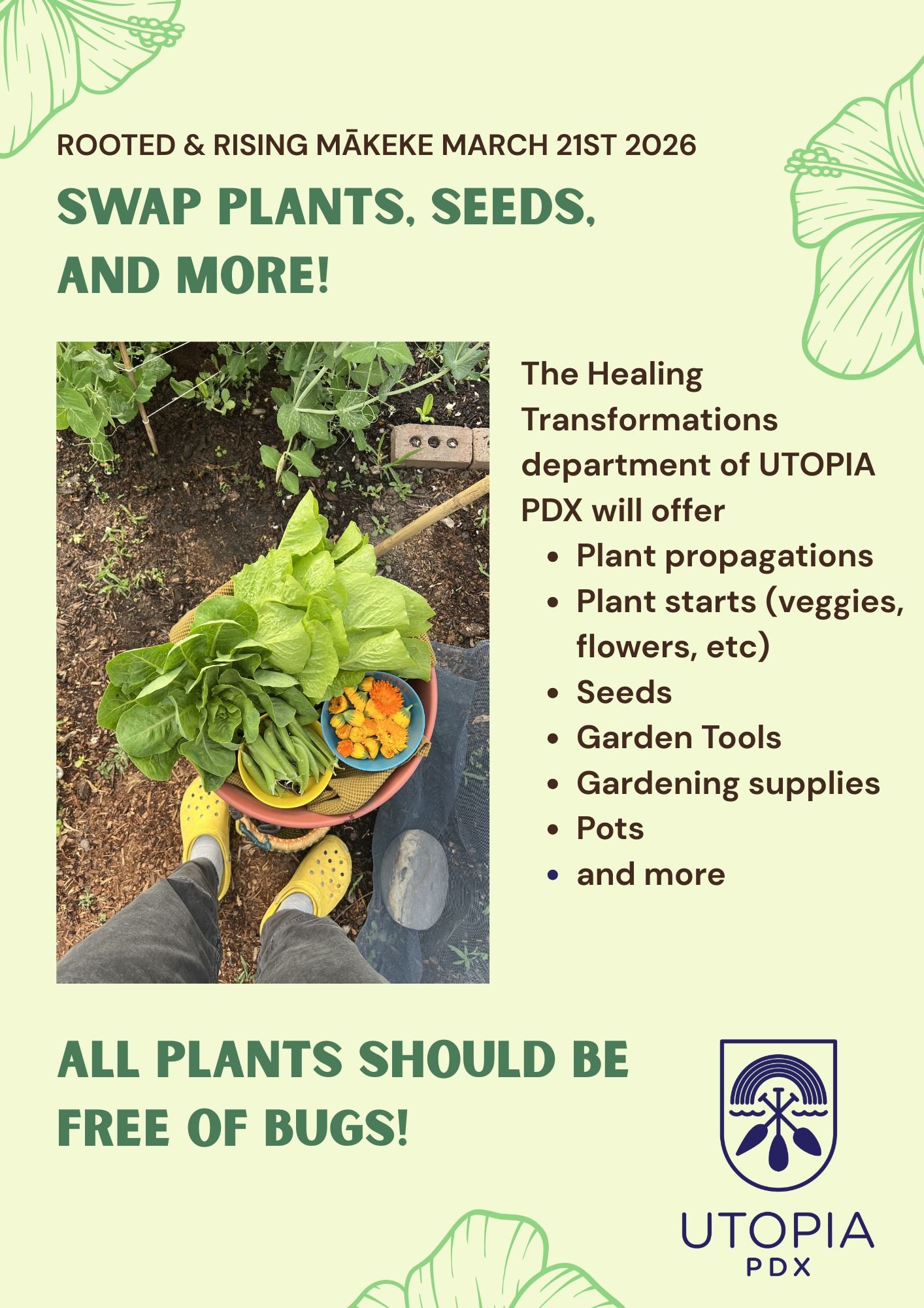 Our first mākeke was only the beginning for UTOPIA PDX, we’re beyond excited to announce that the process for planning the next mākeke event has begun! Rooted & Rising celebrates being grounded and growing into the new spring season being well rested, inspired, & ready to gather with community both indoors and outdoors again.